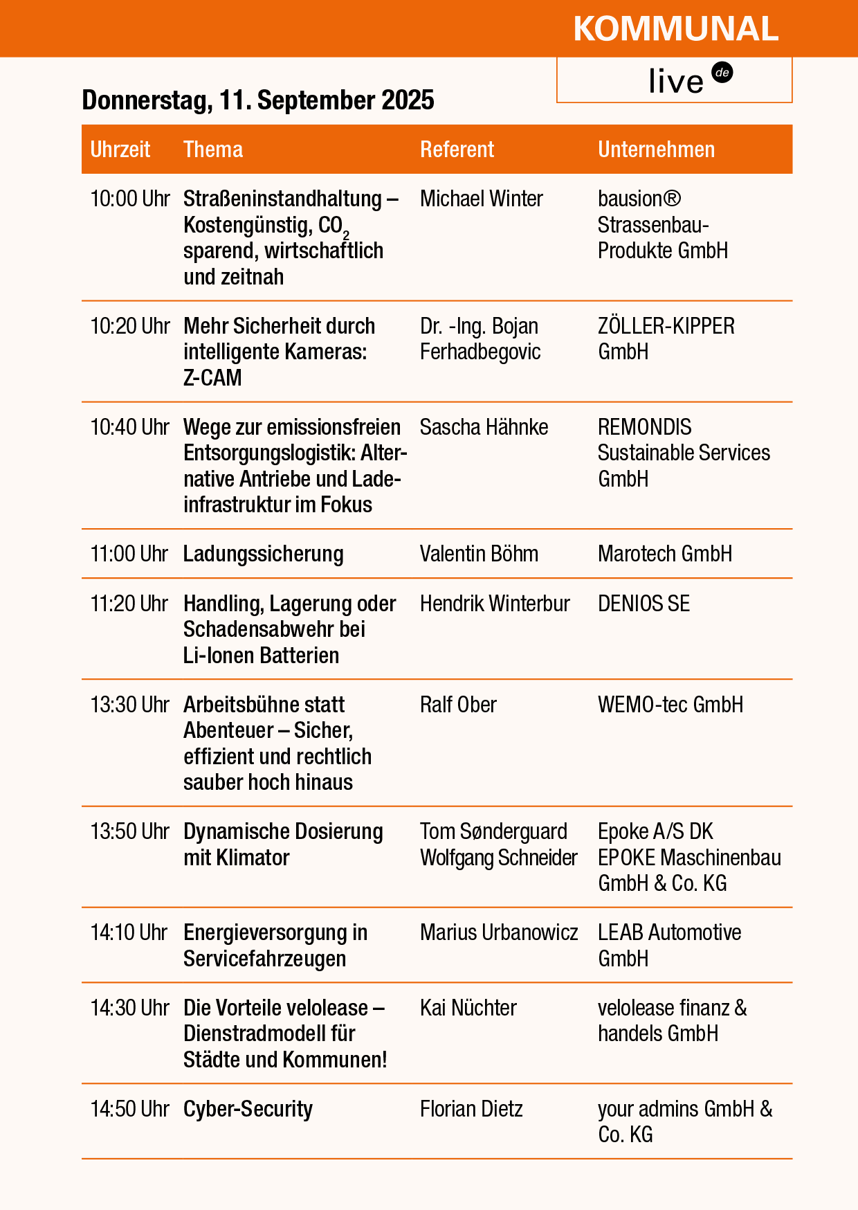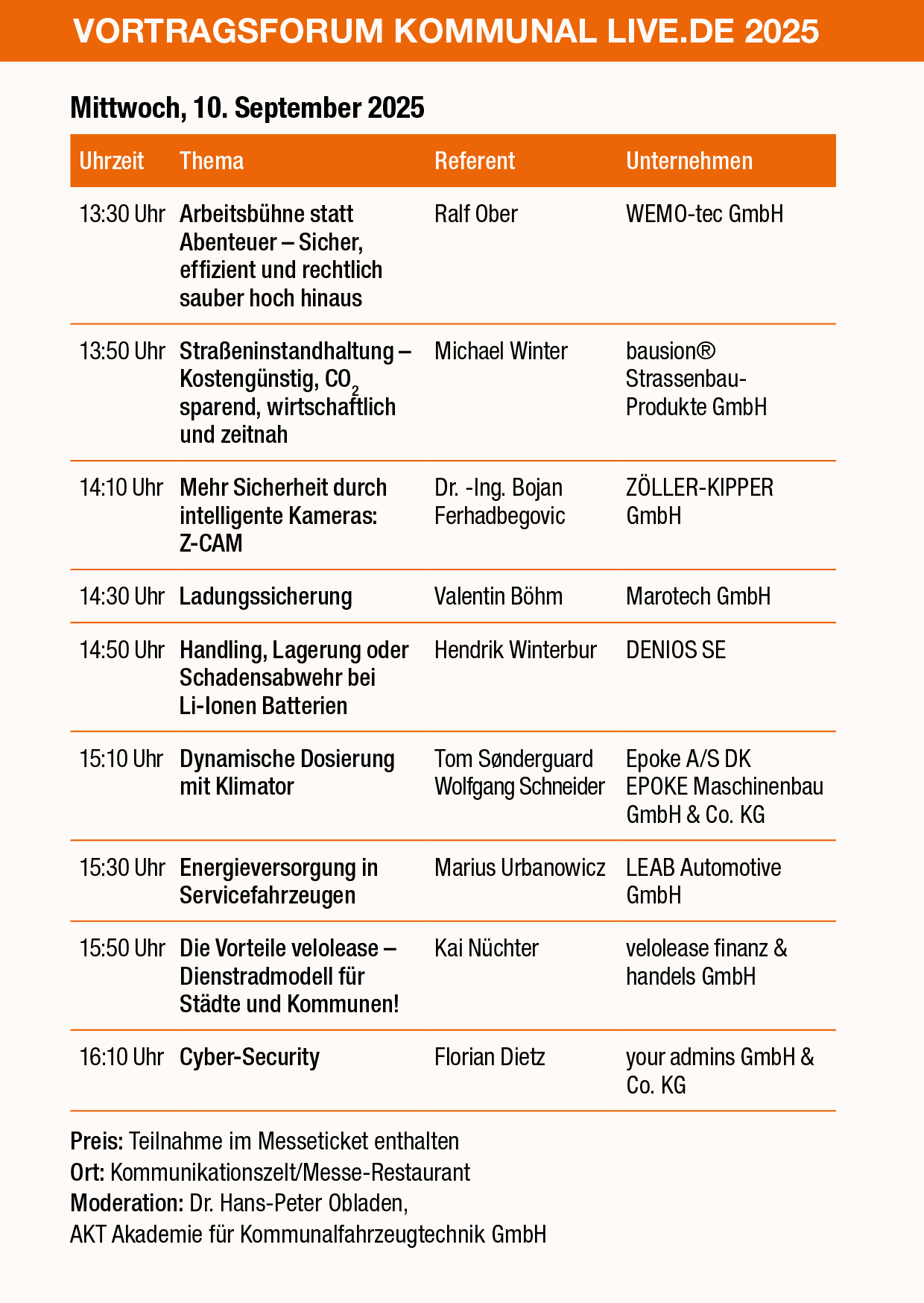 Das Vortragsforum im Rahmen der KOMMUNAL live.de wird in Zusammenarbeit mit Dr. Hans-Peter Obladen und der AKT Akademie für Kommunalfahrzeugtechnik GmbH organisiert.